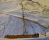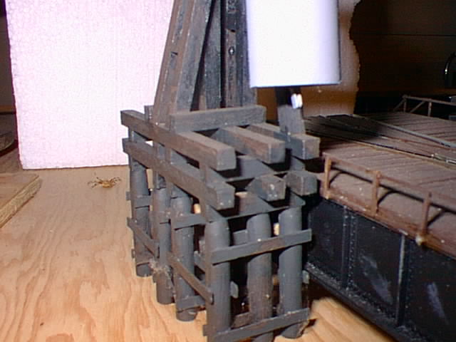 HO scale model of railroad carferry dock showing right side. Model was dropped so there are some broken or bent parts.
