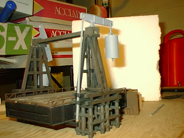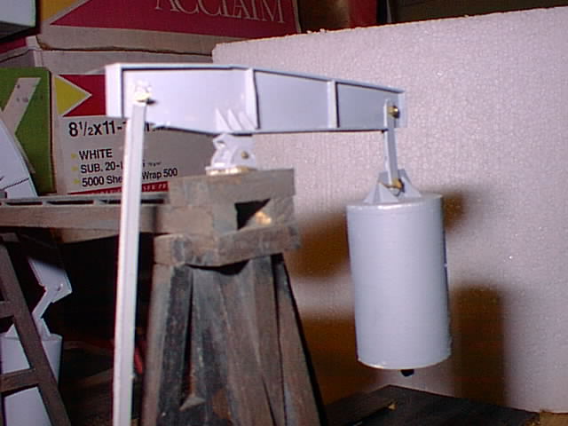 Closeup of balance weight and arm. Cries out for bolt detail, doesn't it? Chunk of wood instead of bolt holding link on!