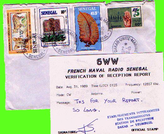 | This is the envelope from the French Naval Radio station 6WW in Senegal.