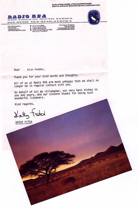 | Radio South Africa heard April 24, 1990, shortly before their final