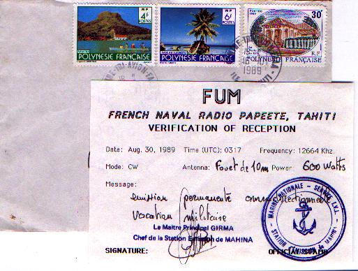 | Envelope and prepared QSL from French Naval station FUM on the island