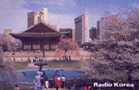 | Radio Korea heard April, 1989. Card is titled "Cherry blossoms in full